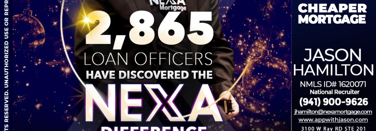 Hi, my name is Jason Hamilton. I’m a Loan Officer with NEXA Mortgage LLC., offering personalized mortgage solutions, fast customized quotes, great rates and service with integrity.