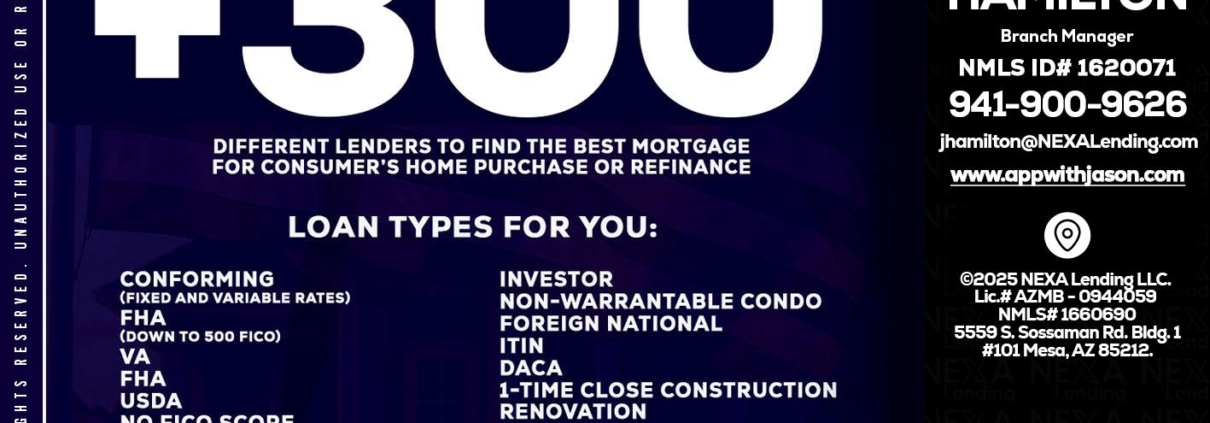 300+ LENDERS - Jason Hamilton -Branch ManagerHi, my name is Jason Hamilton. I’m a Loan Officer with Mortgage team, offering personalized mortgage solutions, fast customized quotes, great rates and service with integrity.