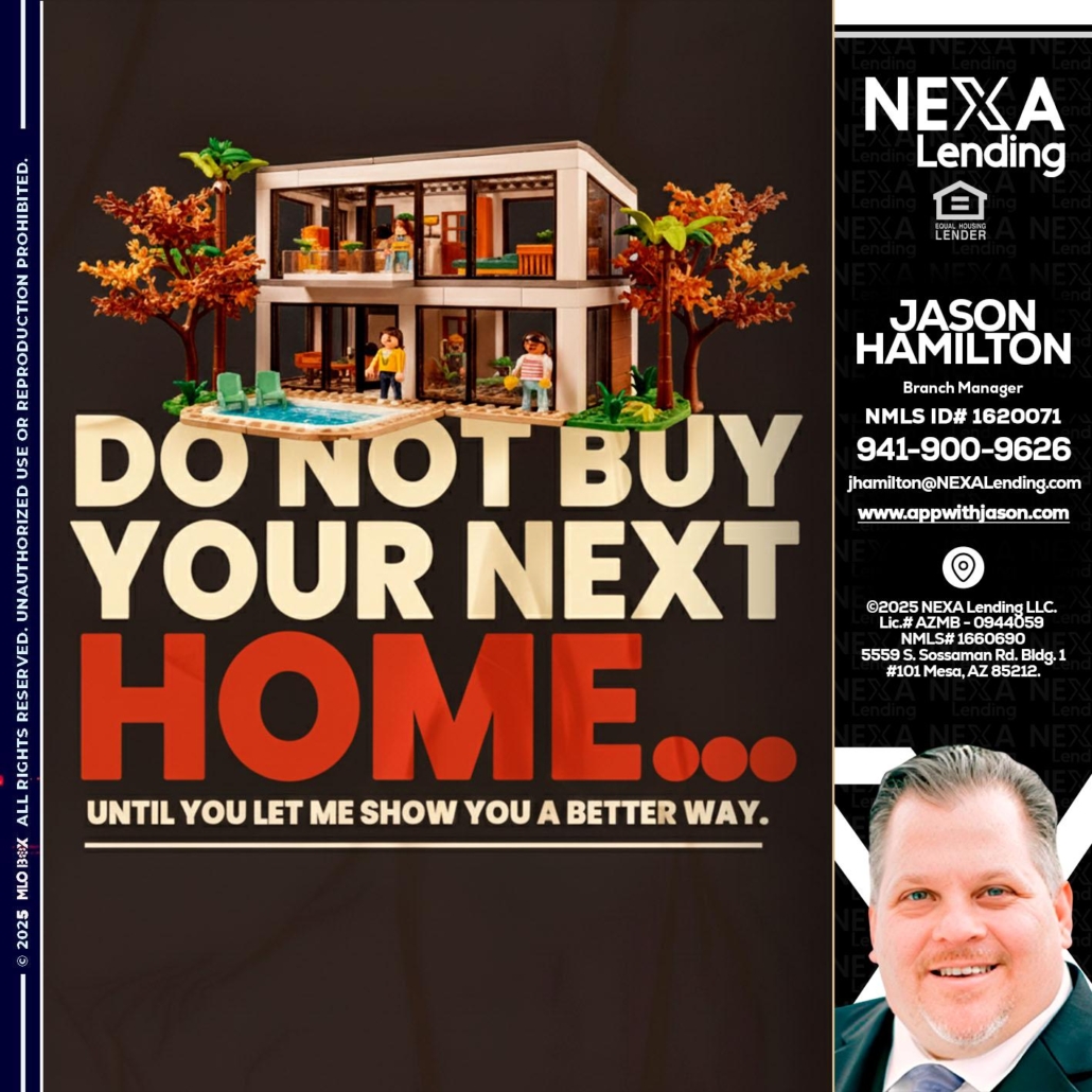Hi, my name is Jason Hamilton. I’m a Loan Officer with NEXA Mortgage LLC., offering personalized mortgage solutions, fast customized quotes, great rates and service with integrity.