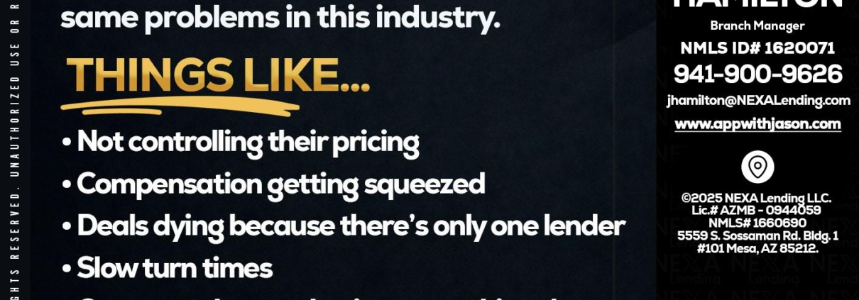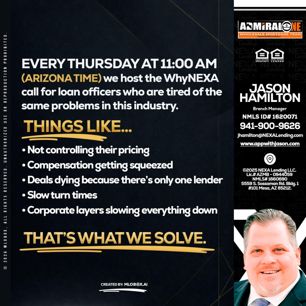 every Thursday - Jason Hamilton -Branch ManagerHi, my name is Jason Hamilton. I’m a Loan Officer with Mortgage team, offering personalized mortgage solutions, fast customized quotes, great rates and service with integrity.