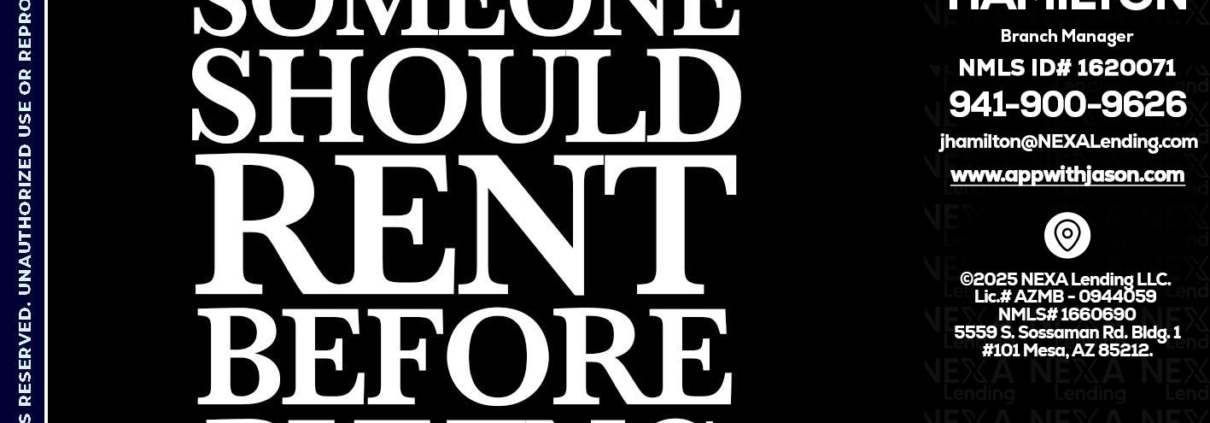Hi, my name is Jason Hamilton. I’m a Loan Officer with NEXA Mortgage LLC., offering personalized mortgage solutions, fast customized quotes, great rates and service with integrity.
