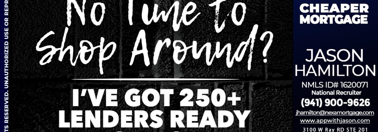 Hi, my name is Jason Hamilton. I’m a Loan Officer with NEXA Mortgage LLC., offering personalized mortgage solutions, fast customized quotes, great rates and service with integrity.