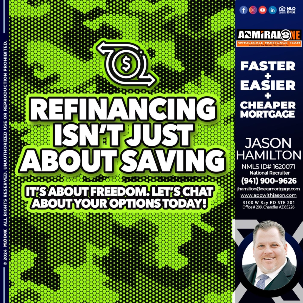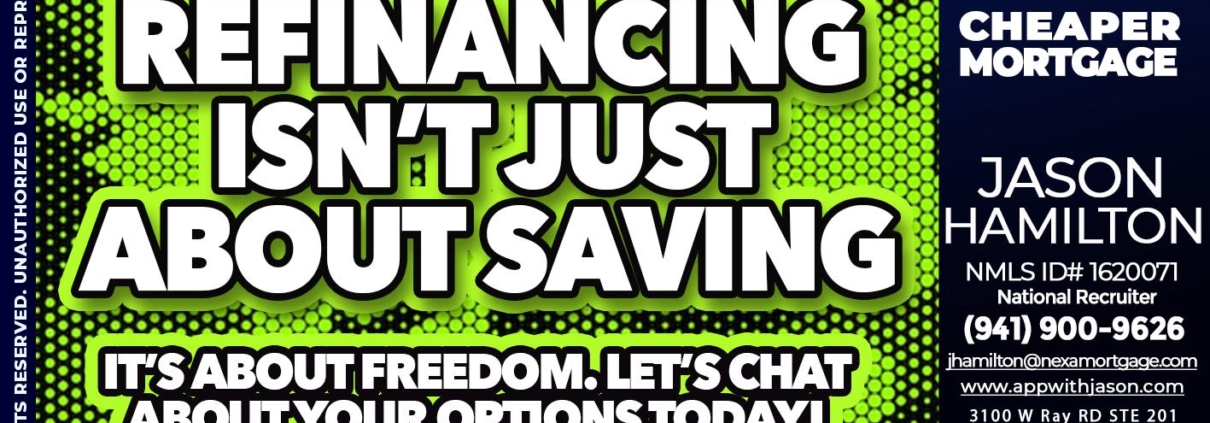 Hi, my name is Jason Hamilton. I’m a Loan Officer with NEXA Mortgage LLC., offering personalized mortgage solutions, fast customized quotes, great rates and service with integrity.