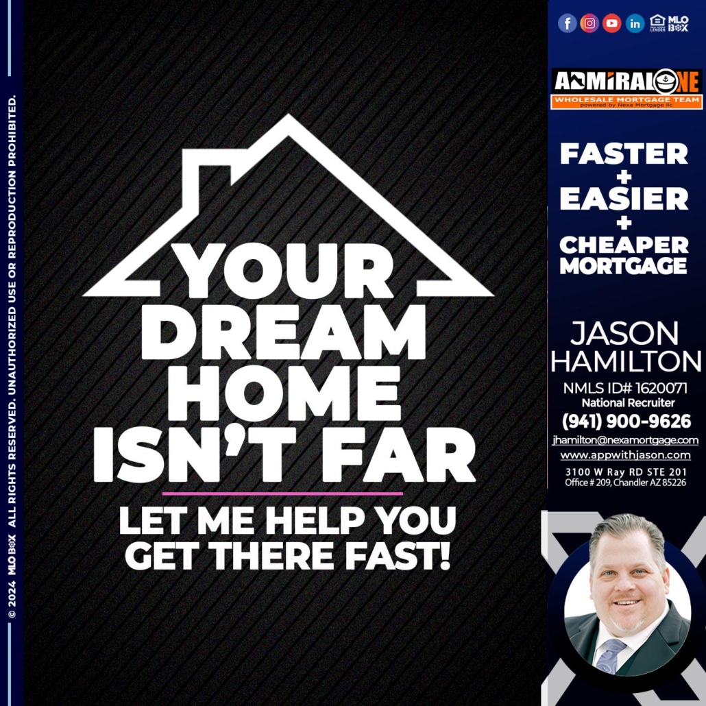Hi, my name is Jason Hamilton. I’m a Loan Officer with NEXA Mortgage LLC., offering personalized mortgage solutions, fast customized quotes, great rates and service with integrity.